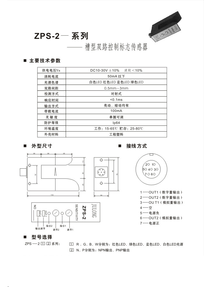 :ZPS-2系列 槽型/U型对射式 色标光电传感器